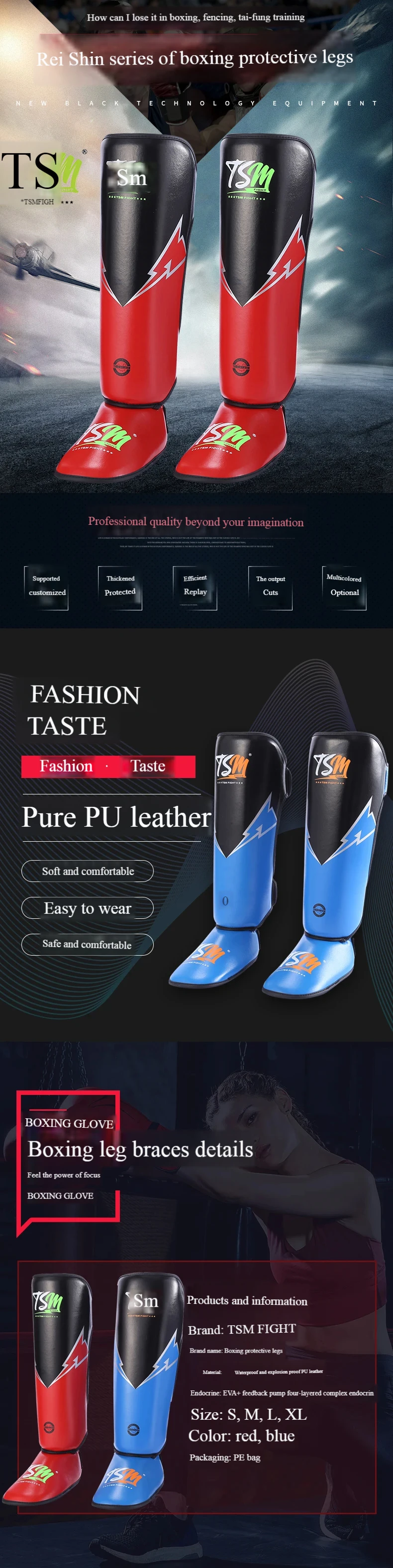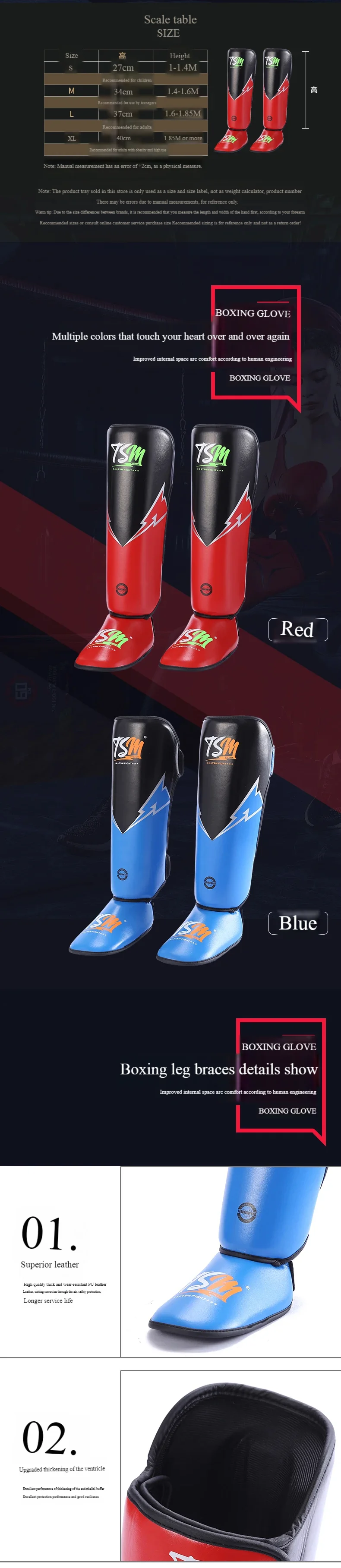 TSM Boxing Leg Guard Muay Thai Shin Guard and Foot Back Sanda Combat Training for Adults and Children Competition Protection